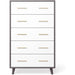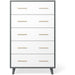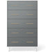 New York single dresser is a space saver and style maximizing instrument. Equipped with five large drawers, it can keep those small rooms neat and comfortable. This dresser is available in standard and two-tone finish but it can also be upgraded with Eco-Leather Inlay in Silver or Copper.