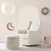 The Enoki Storage Ottoman is as functional as it is stylish, with its round, stacked look and ample storage for all of your baby's extra sheets and blankets. Upholstered by hand in our texture-rich boucle fabric, this trendy ottoman can be paired with any seating to create a statement piece in your nursery or home.