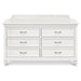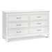 Bring the elegance of romantic French country inspired style into the home with the Darlington 6-Drawer Dresser. The dresser balances classic raised molding on six drawer fronts, delicate tapered feet, and accent satin nickel drawer handles. All spacious drawers feature dovetail construction with self-closing, ball-bearing drawer glides. Available in a Warm White finish.